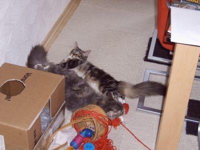 Theo & Shennah nach getaner Arbeit soll Katze ruhen